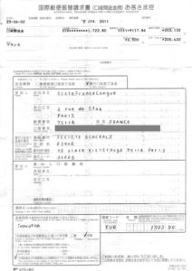 パリのFrance Langueへは国際送金での支払いでした