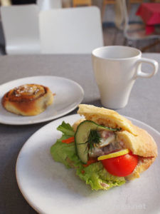カウンターにサンドウィッチやケーキが並んでて、そこで注文・支払いをし自分で席に運ぶスタイルでした。これもヘルシンキのカフェスオミと同じ!